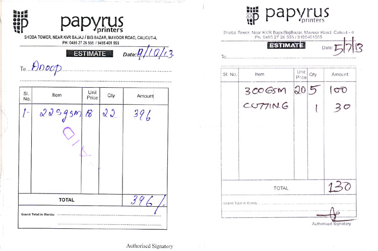 | 8 | Printouts for Memento, Phone Book, Invitation Card etc | 1564 |