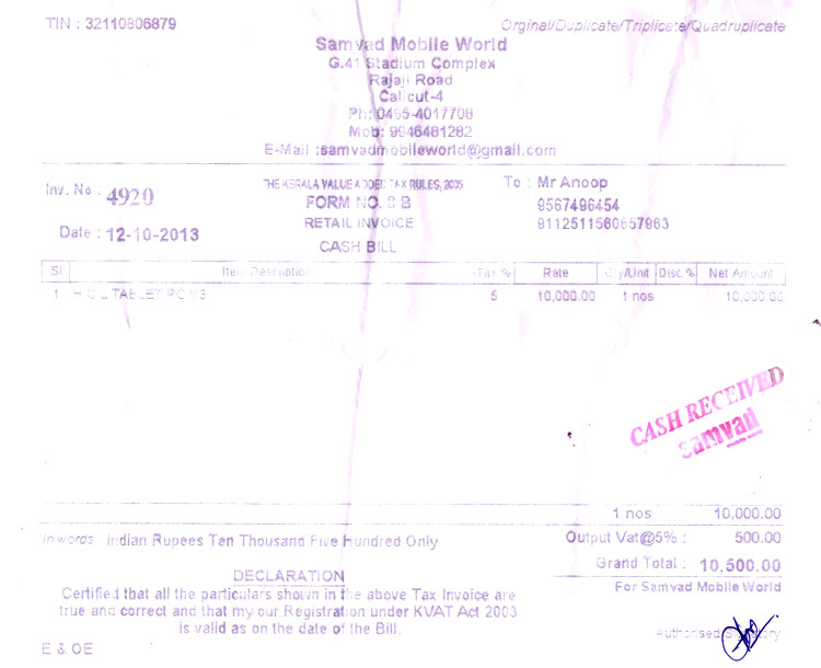 | 11 | Gift for Organiser (Tab) | 10500 |