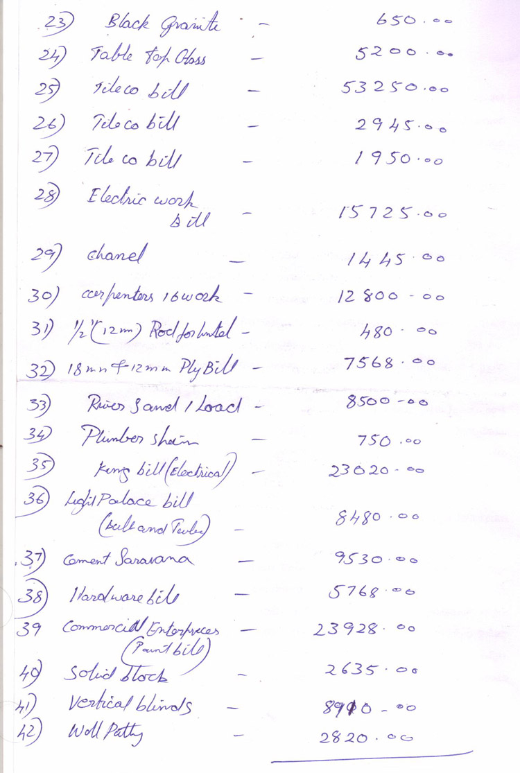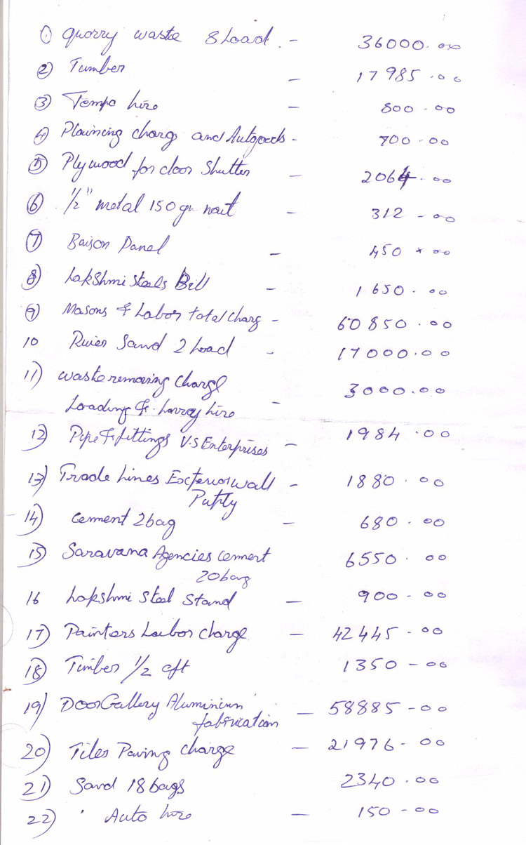 | 18 | Carpentry Labour charges (16 work) | 12800 |