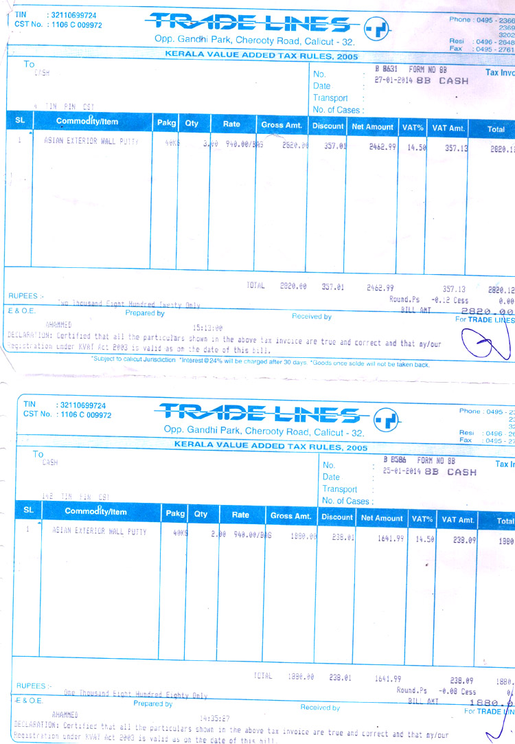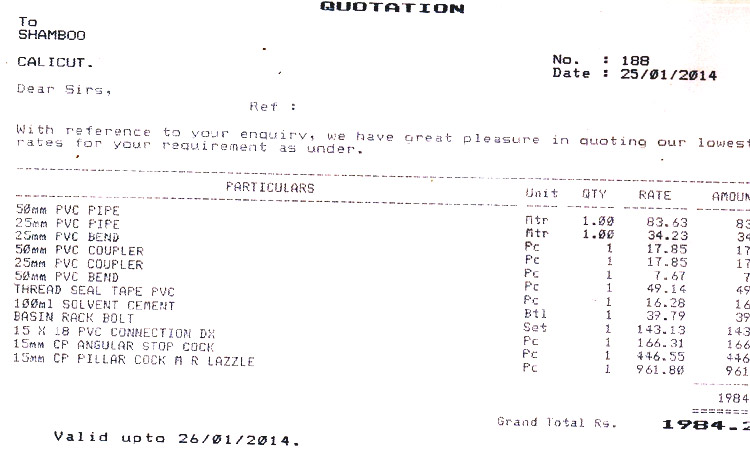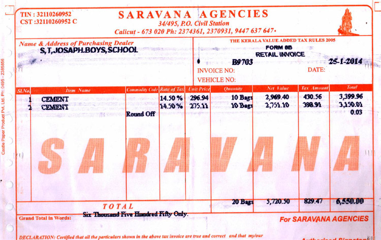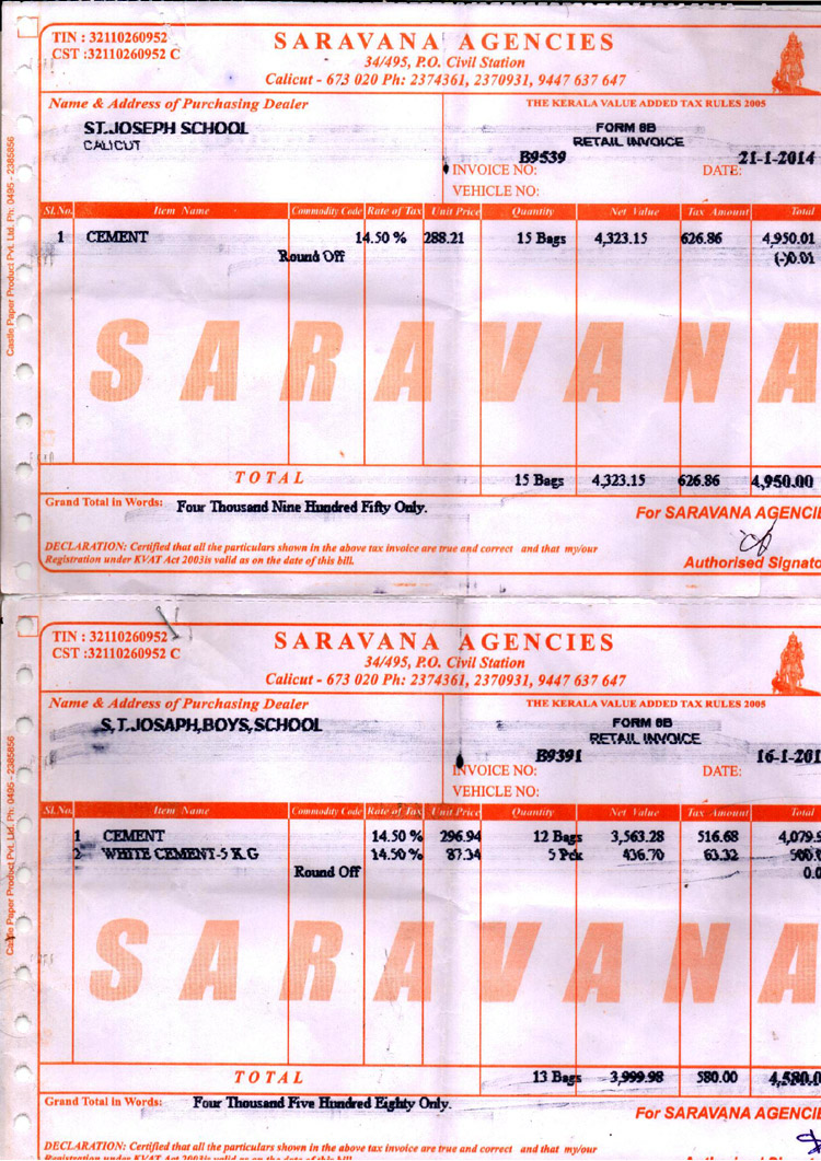 | 1 | Cement (49 Bags) & White Cement (5kg) | 16760 |