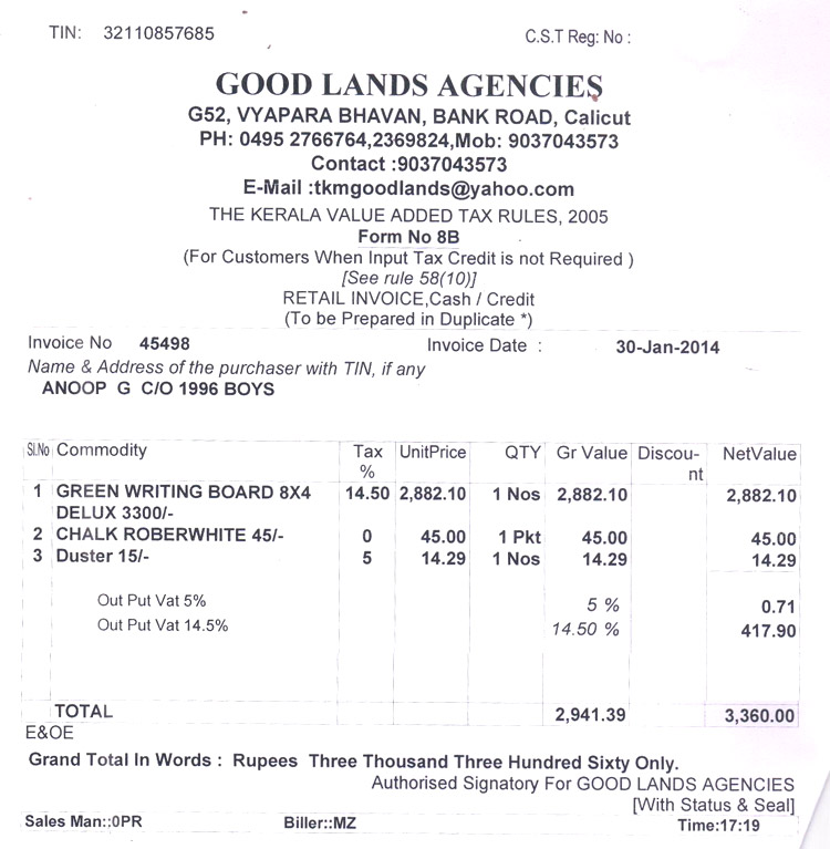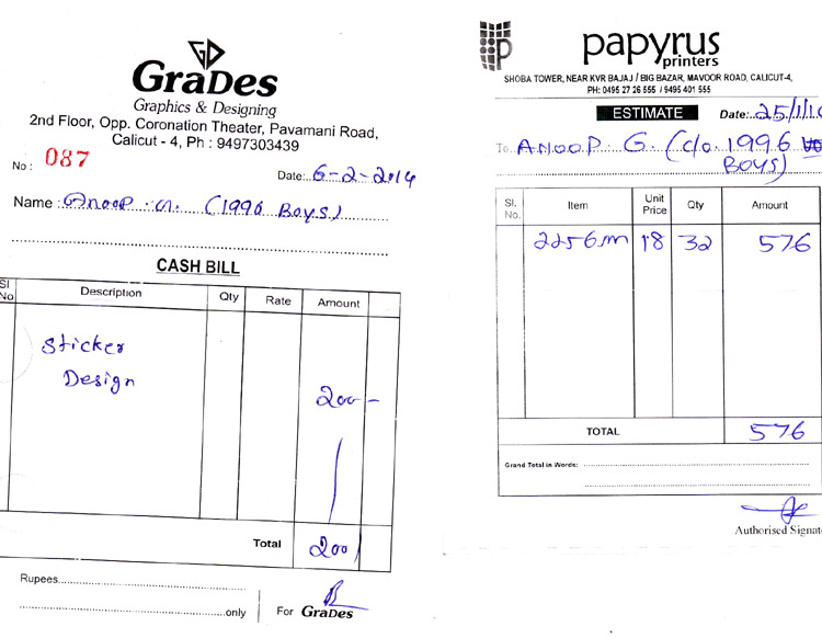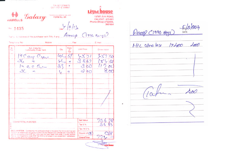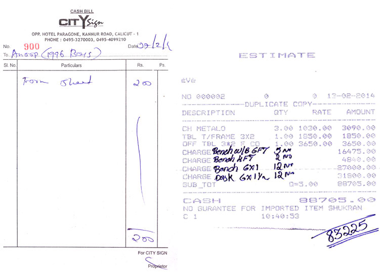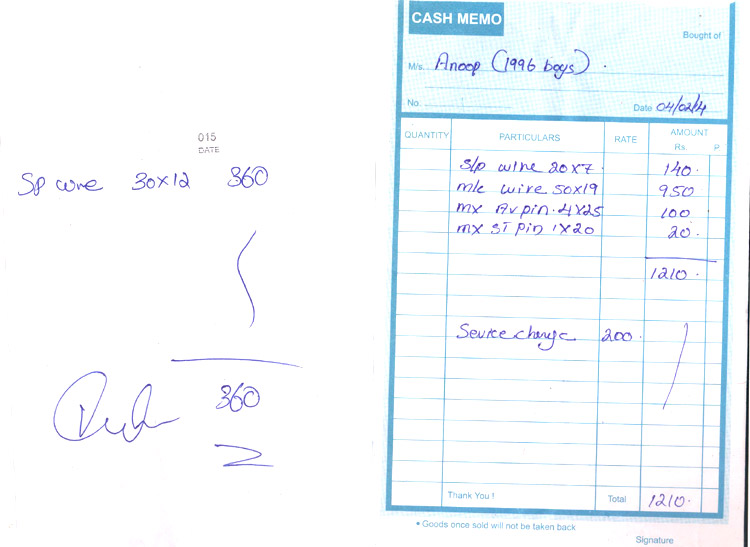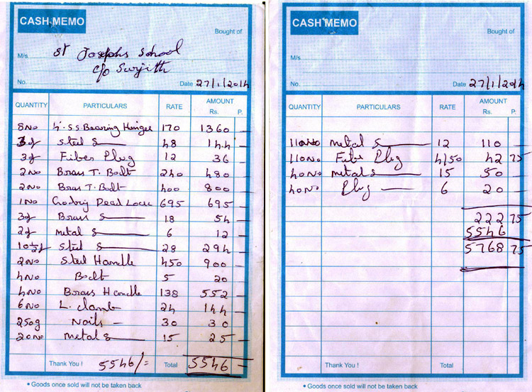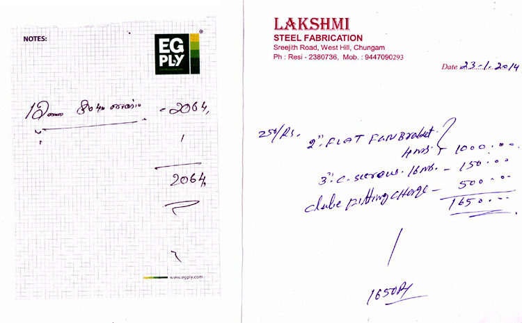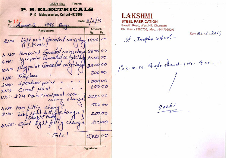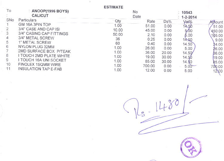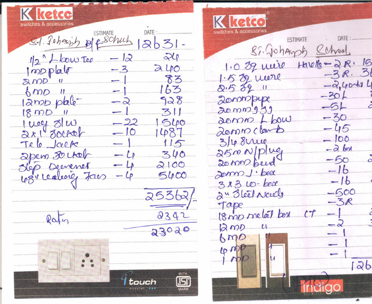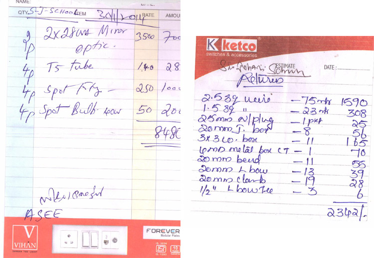 | 15 | Electrician's charges for fixing Ext. Channels | 5250 |