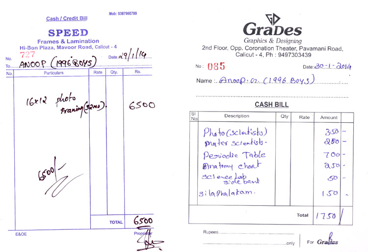 | 6 | Framing of Photos of 32 Scientists (16'' x 12'') | 6500 |