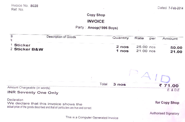 | 3 | Labourers' charges (43 units @ Rs.650/-) | 27950 |